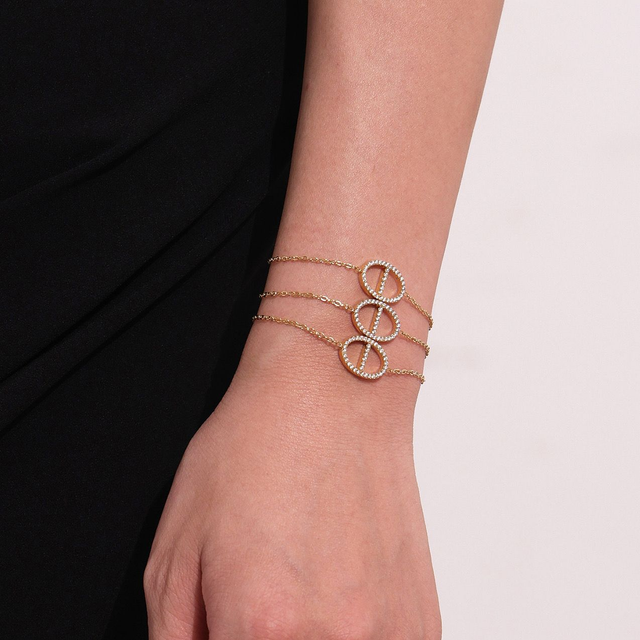 Affirmez votre allure avec le bracelet Eslem, un bijou élégant et contemporain sublimé par de délicats motifs ovales sertis de strass scintillants. Son design structuré et lumineux apporte une touche de sophistication moderne, idéale pour sublimer le poignet avec finesse.🌼