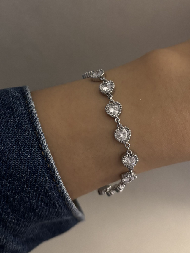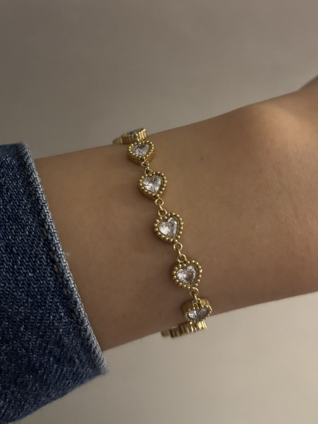 Apportez une touche de romantisme et d’éclat à votre poignet avec le bracelet Noor. Parsemé de cœurs délicats sertis de diamants et de strass scintillants, il sublime votre style avec élégance et charme.✨